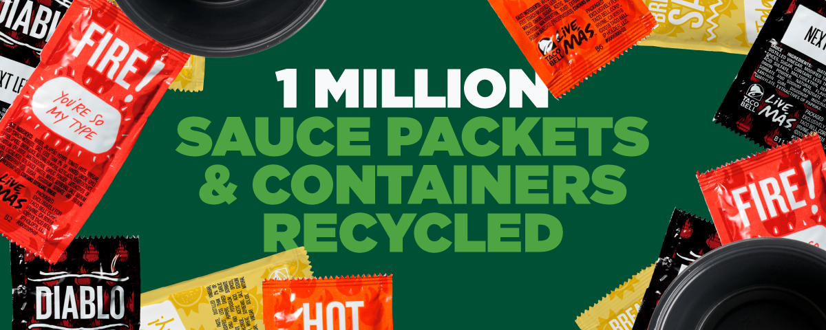 *US only. Earn 80 Bonus Reward points when you recycle your used, empty sauce packets, sauce dipping cups, 2 oz souffle cups/lids, and coffee creamer pods with TerraCycle from 4/1/2026 - 4/30/2026 through 11:59 PM PST. (Taco Bell and any other brands accepted). Rewards members must use their Taco Bell Rewards account email address when they recycle on the TerraCycle site in order to receive the bonus points. 80 Bonus Points will only be rewarded one time per Taco Bell Rewards account regardless of the quantity of packets being recycled. Bonus Points will be reflected in Taco Bell Rewards account around end-May 2026. No cash value. Taco Bell Rewards program is available at participating US locations and subject to terms and conditions. https://www.tacobell.com/terracycle.