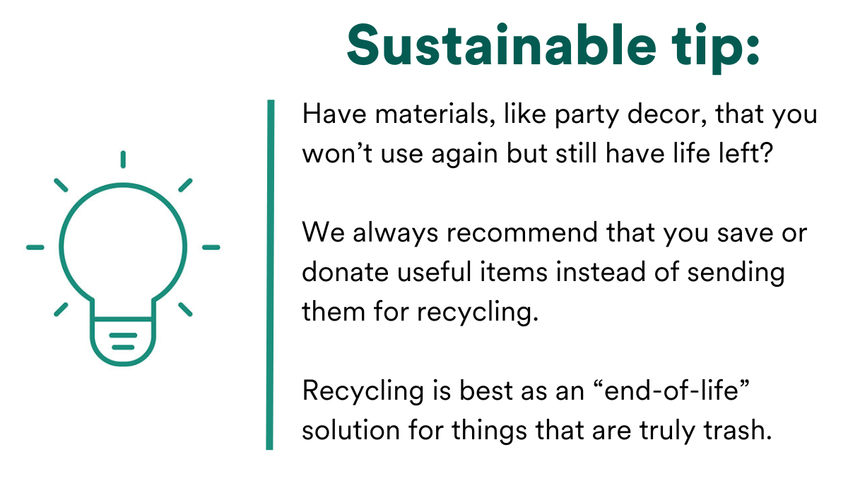 We guarantee that we recycle all of the accepted waste sent to us through our Zero Waste Boxes. Your event waste will be recycled into all sorts of things, including outdoor furniture, plastic shipping pallets, flooring tiles, and much more.
