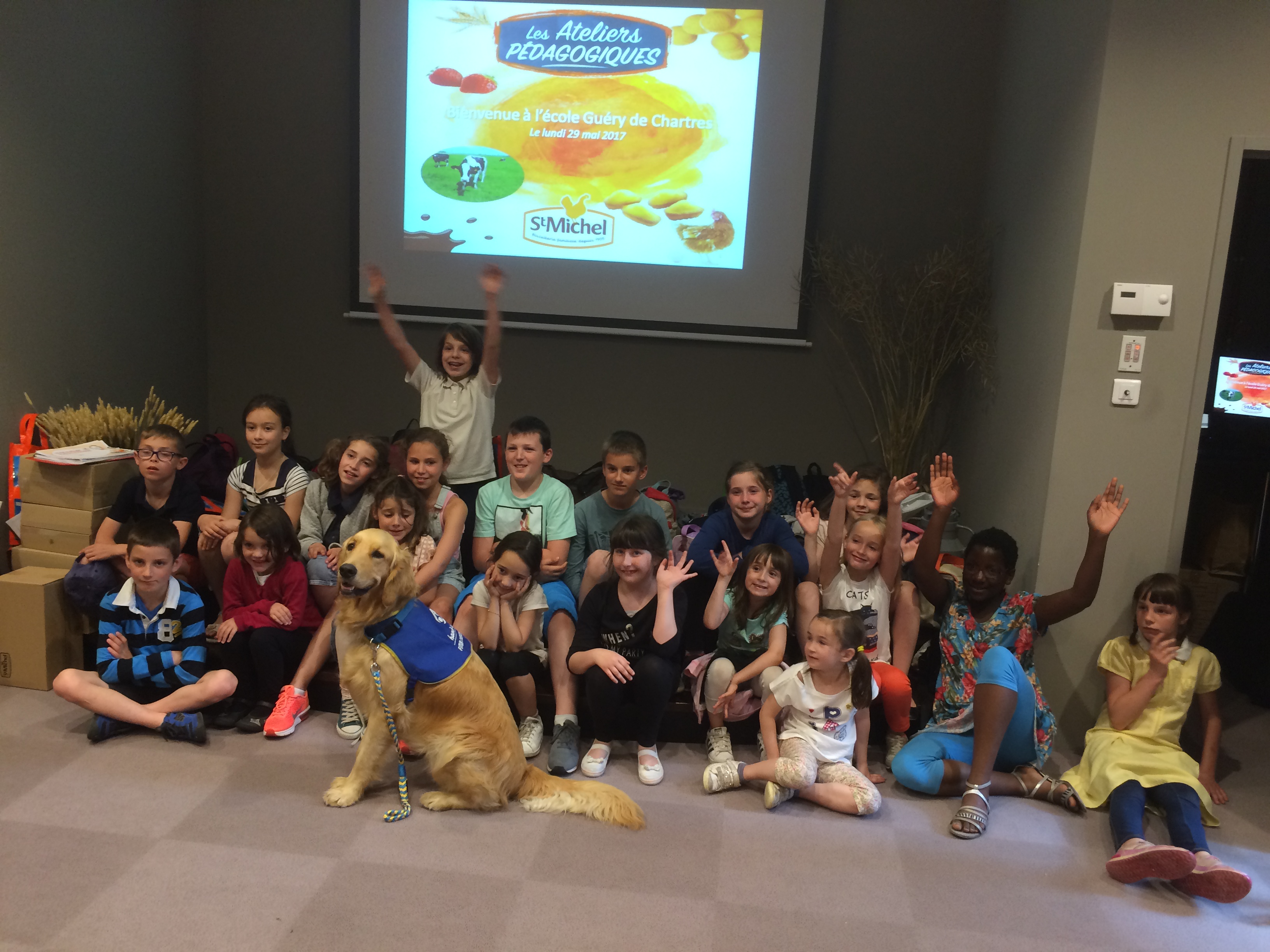 St Michel soutient Handi'Chiens dans son partenariat avec TerraCycle. Un membre de l'association est donc venu expliquer aux enfants la mission d'Handi'Chiens, à savoir, éduquer et remettre gratuitement des chiens d’assistance à des personnes atteintes d’un handicap moteur.