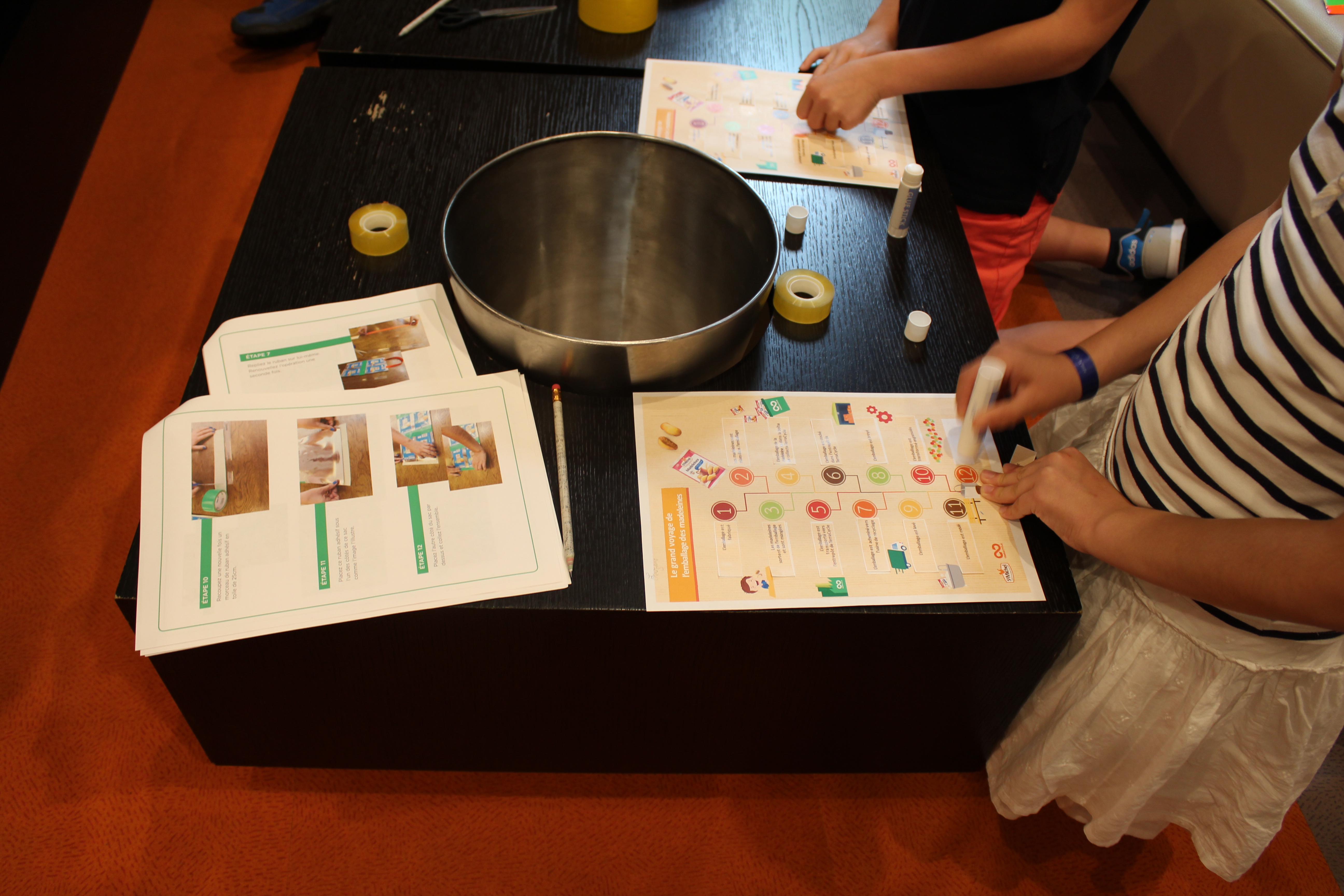 Les enfants devaient fabriquer un sac en emballages de biscuits et pâtisseries.