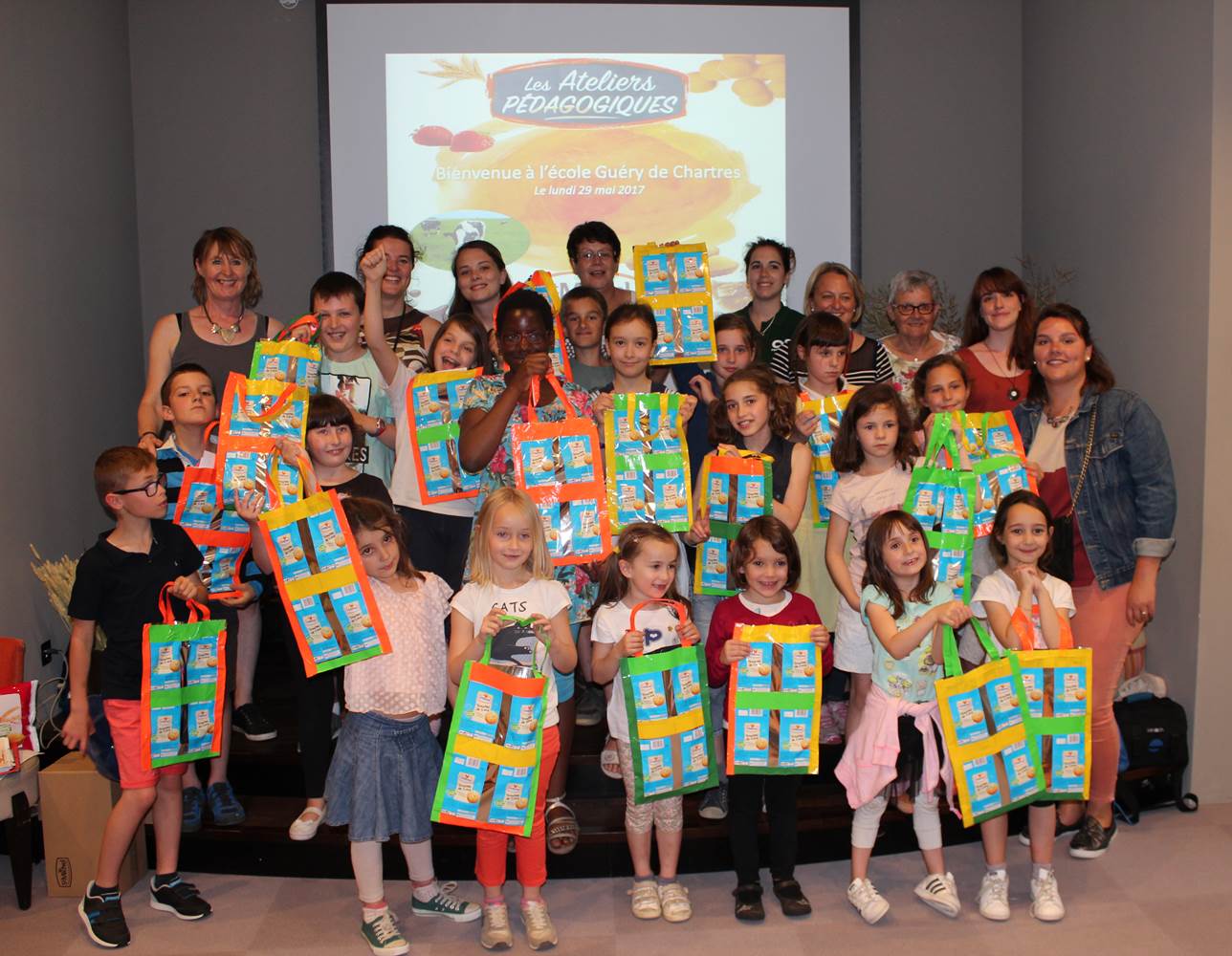 Le 29 mai 2017, St Michel a accueilli les élèves de l'école Guéry de Chartres dans son atelier à Contres pour découvrir les coulisses de l'entreprise, en récompense de leur participation au programme de recyclage St Michel ! L'école Guéry est l'école qui a collecté le plus d'emballages de biscuits et pâtisseries en France à ce jour, avec plus de 70 000 unités. Bravo !