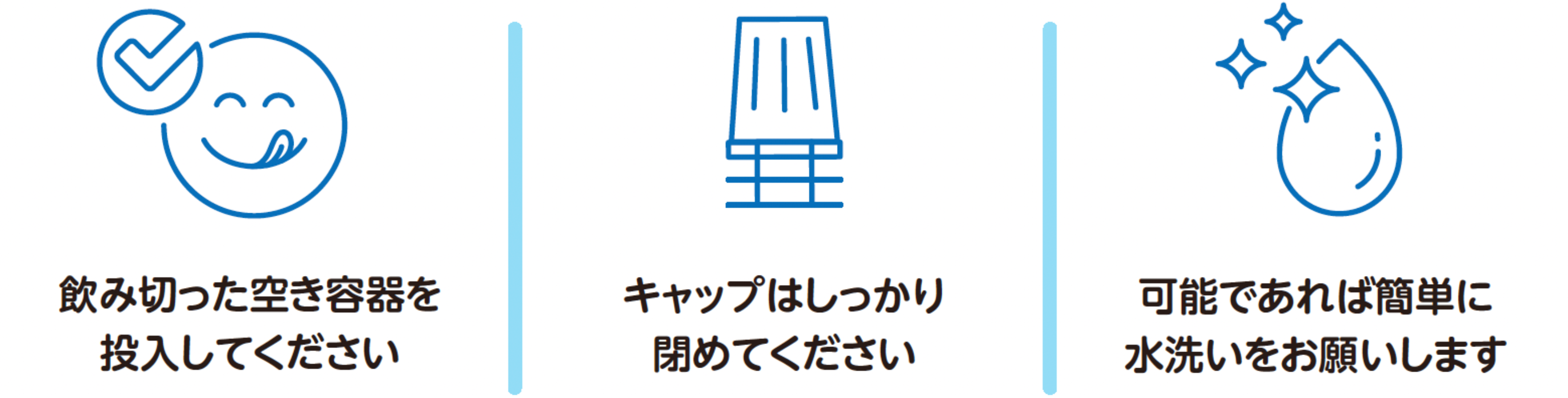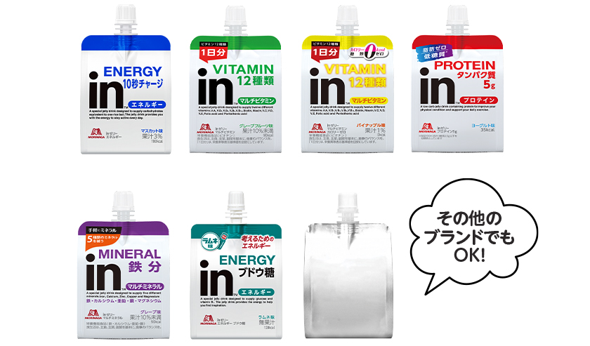 パウチタイプゼリー飲料の空き容器(ブランド・メーカーは問いません) ・空き容器のみ回収可能です。 ・飲みきった空き容器のキャップをしっかり閉めて回収箱へお入れください。 ・可能であれば簡単に水洗いをお願いします。