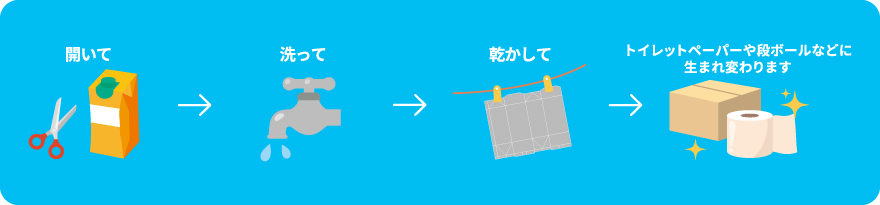【プログラム参加方法】 1.飲み終わった紙パックを開いてください。キャップや飲み口は外してください。 2.紙パックを洗ってください。 3.乾かして最寄りの回収実施店舗へお持ちください。対象回収拠点は地図をご確認ください。