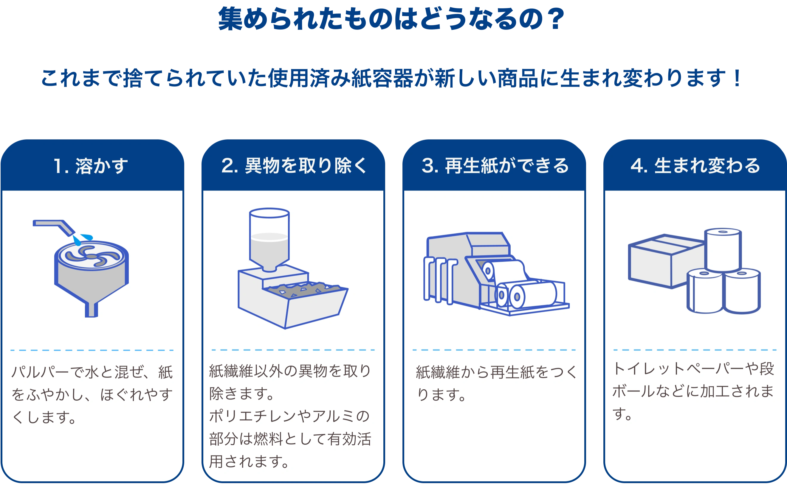 【回収対象外】 ・ 洗剤、シャンプーなど食品・飲料以外の紙容器 ・ 紙でない容器(プラスチックなど)