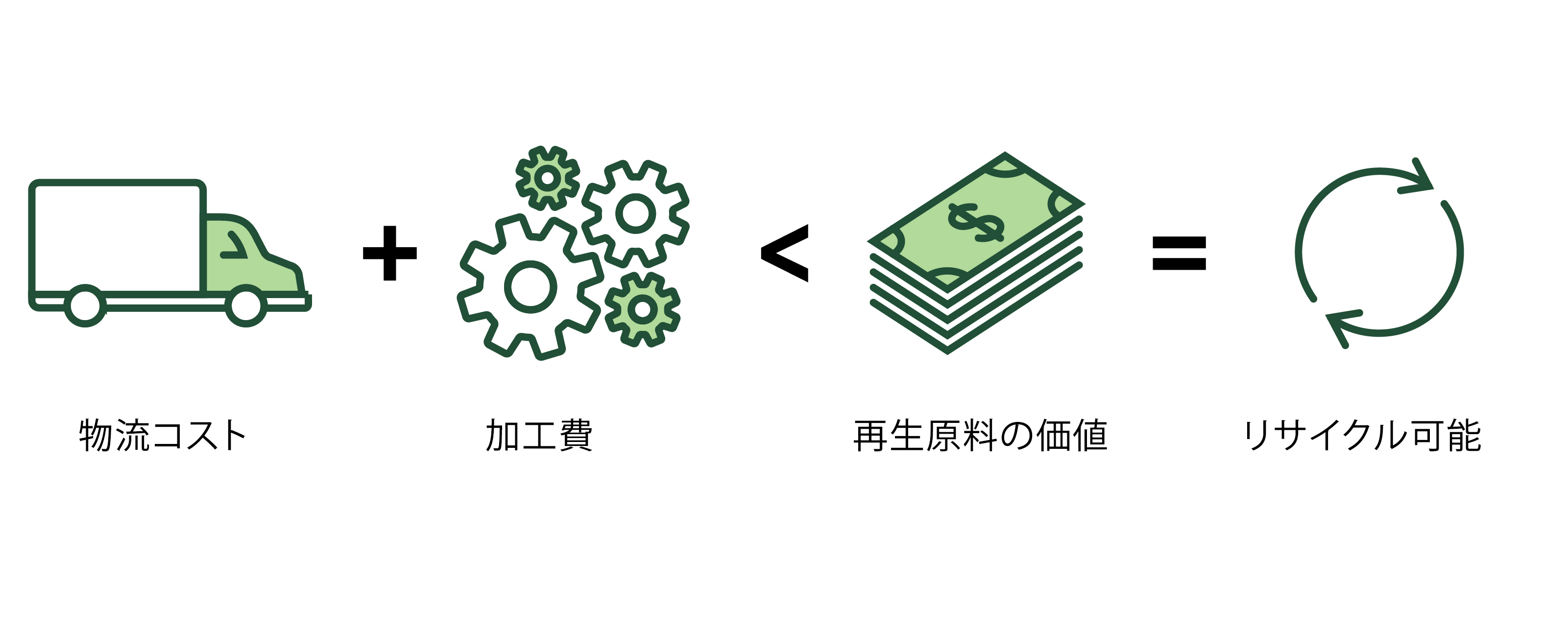 リサイクルは、他のサービスと同様に、時間とお金がかかります。リサイクル工程の費用には、収集、輸送、仕分け、保管、そして分別、洗浄、原料への加工が含まれます。
